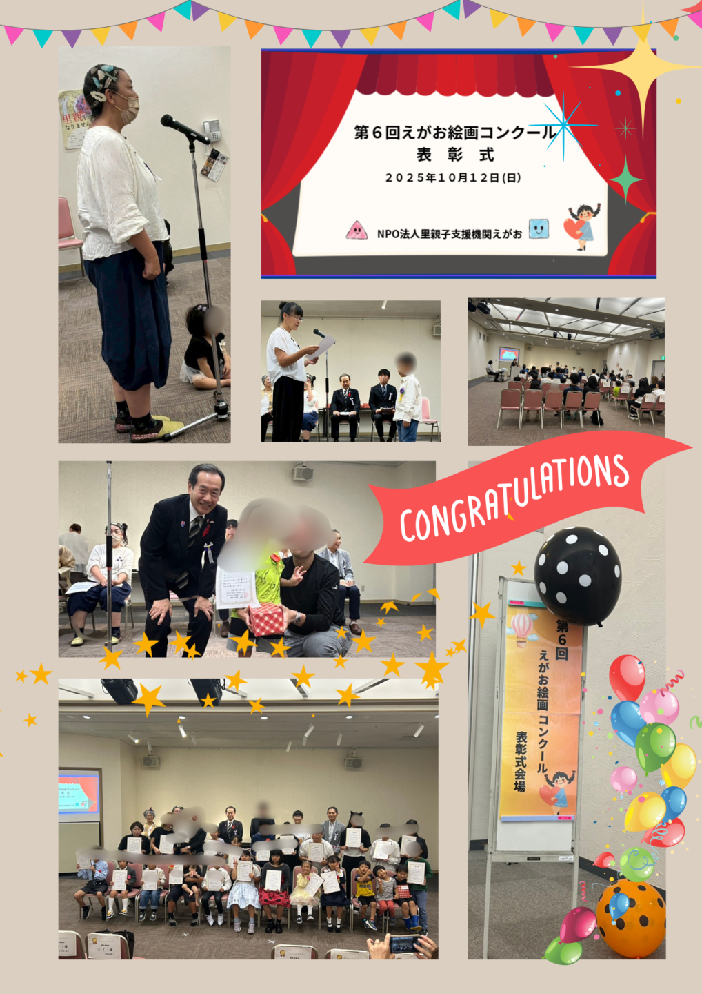 10月12日(日) 門真市ルミエールホール・レセプションルームにて、第6回えがお絵画コンクール表彰式が行われました。たくさんの受賞者の方が参列して下さり、今年はなんと名古屋から受賞者が!また、BGM賞に韓国から表彰式に参列して下さいました。