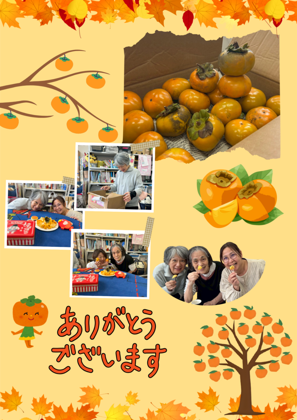 「隣の客はよく柿を食う客だ」って早口言葉がありますよね。えがおの理事長はその早口言葉通りの人で果物では柿が大の好物(#^.^#)幸せそうなとろける笑顔をしているでしょ~((´∀`))