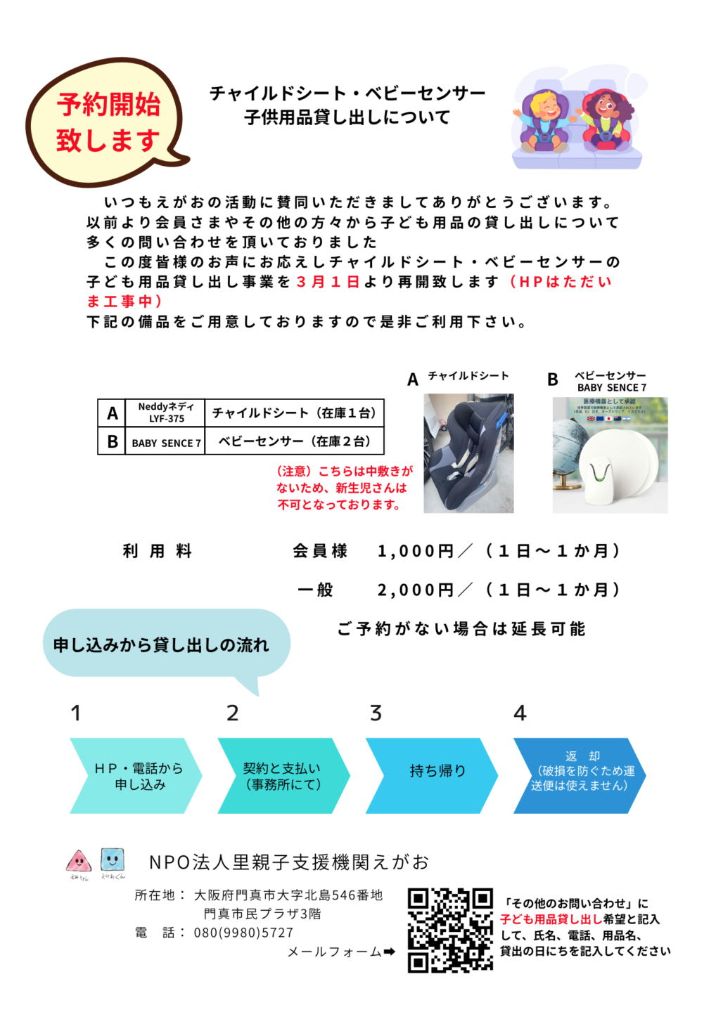 「子ども用品貸し出し事業」再開いたします